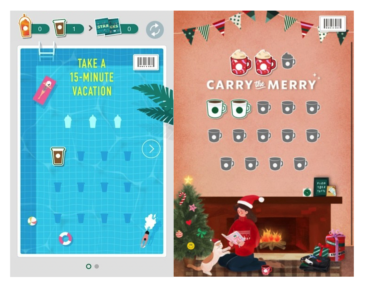 스타벅스의 프리퀀시 적립은 해당 기간 동안 미션 음료 3잔 포함 총 17잔의 음료를 구매하시면 프리퀀시 적립이 완료됩니다. 적립이 완료되면 쿠폰이 발행되는데, 그 쿠폰으로 증정품을 바꿀 수 있습니다. 이처럼 퀘스트(Quest)에 따른 보상(Reward)이라는 게임의 특성을 살려 고객으로 하여금 해당 제품을 더 구매하게 하는 마케팅 방법으로 한때 ‘오픈런’ 열풍과 ‘품절 대란’을 일으킨 한정판 굿즈가 게이미피케이션 잘 활용한 대표적인 사례로 볼 수 있습니다.