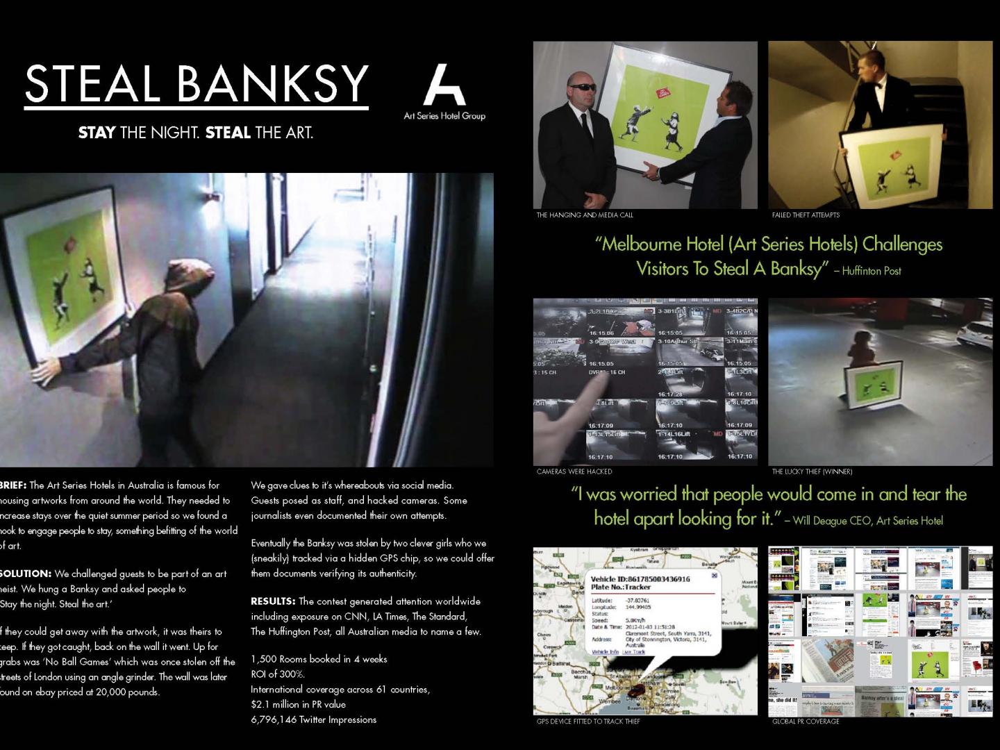 호주의 유명 호텔 체인인 아트 시리즈 호텔(Art Series Hotel)은 로비와 객실 곳곳에 예술 작품이 전시되어 있는 곳으로 예술과 관련된 각종 체험을 제공하는 곳으로 유명합니다. 하지만 여느 호텔처럼 투숙객들이 각종 비품을 가져가는 절도 행위로 골머리를 않고 있었습니다. 그래서 이 문제성을 상기시키고 홍보하려는 목적으로 세계적인 아티스트인 뱅크시의 작품을 합법적으로 훔치는 ‘Steal Banksy’ 이벤트를 기획합니다.
